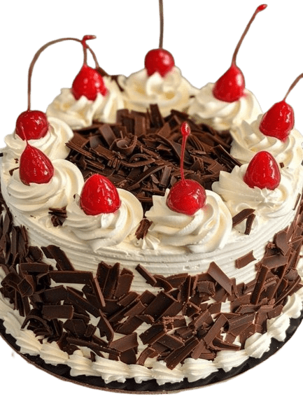 🍒 Classic chocolate sponge layered with whipped cream and cherries